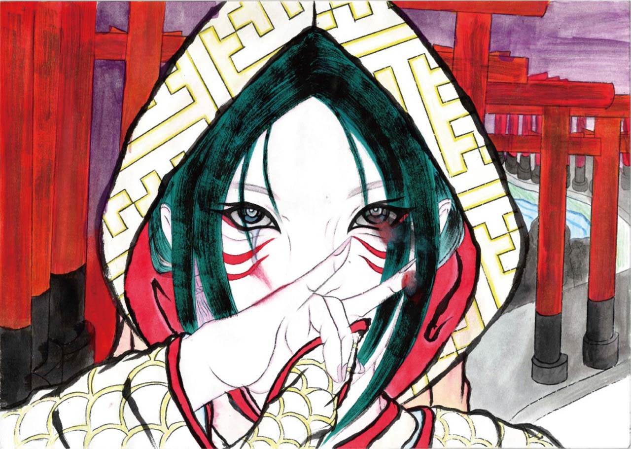 自分が高山稲荷神社に参拝した時に感じた事をそのまま絵に起こしてみました。つがる市の要素を前面に出せたかは分かりませんがテーマに沿って描きましたのでどうか作品から少しでも雰囲気を感じて頂ければ幸いです。😌
